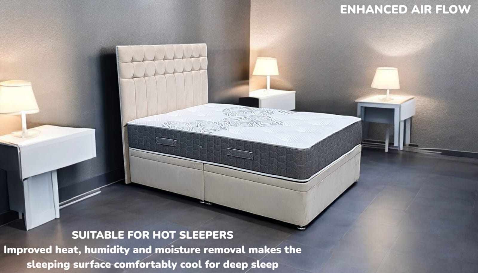 - Facilitates air regulation through the mattress core to expel the warm or hot air out