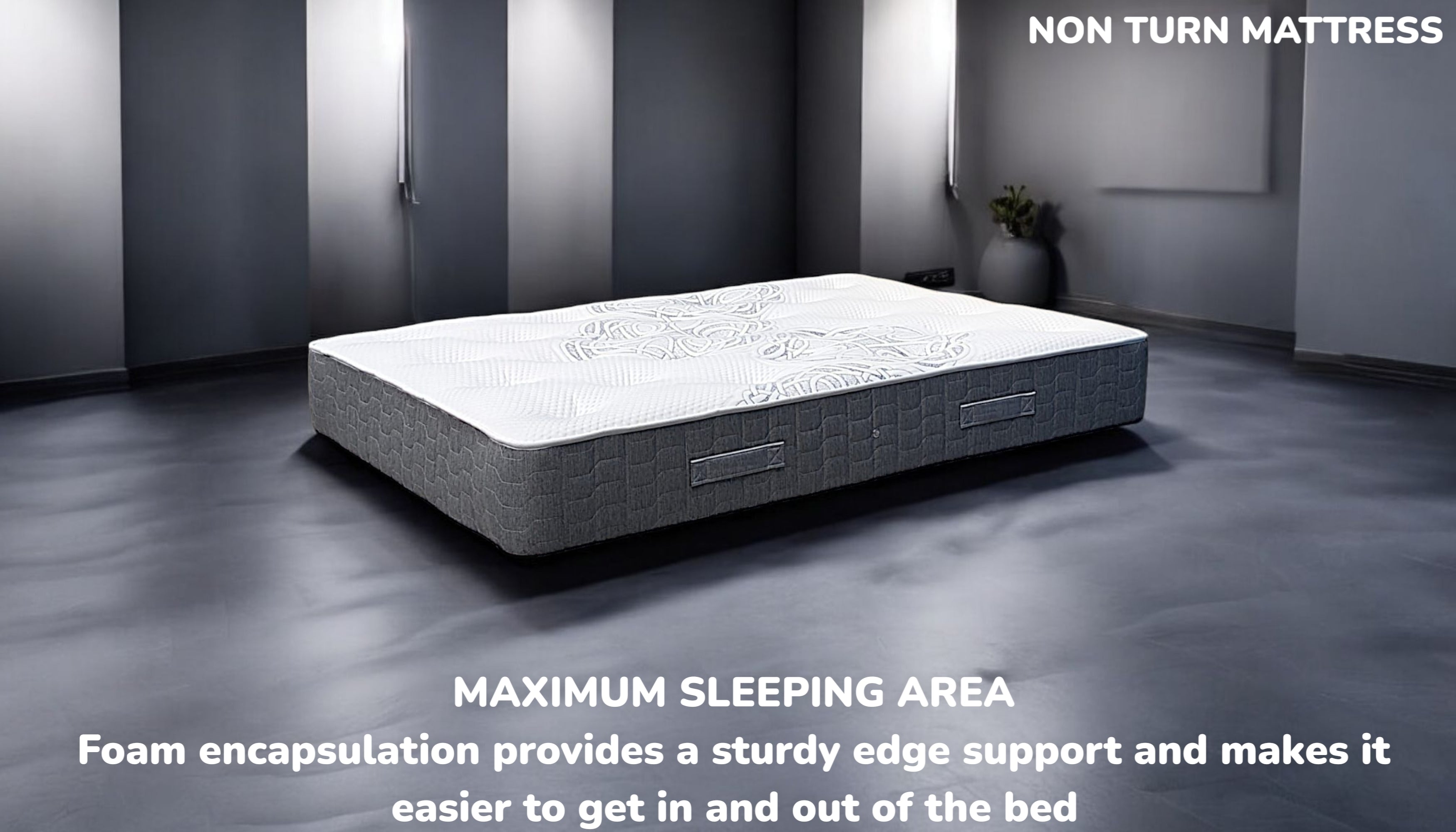 Encased with a high density foam walls to provide edge-to-edge support, prevent edge breakdown and maximise the sleeping surface area for each partner - sleeping support to the very edge of the mattress for your disturbance free sleep.