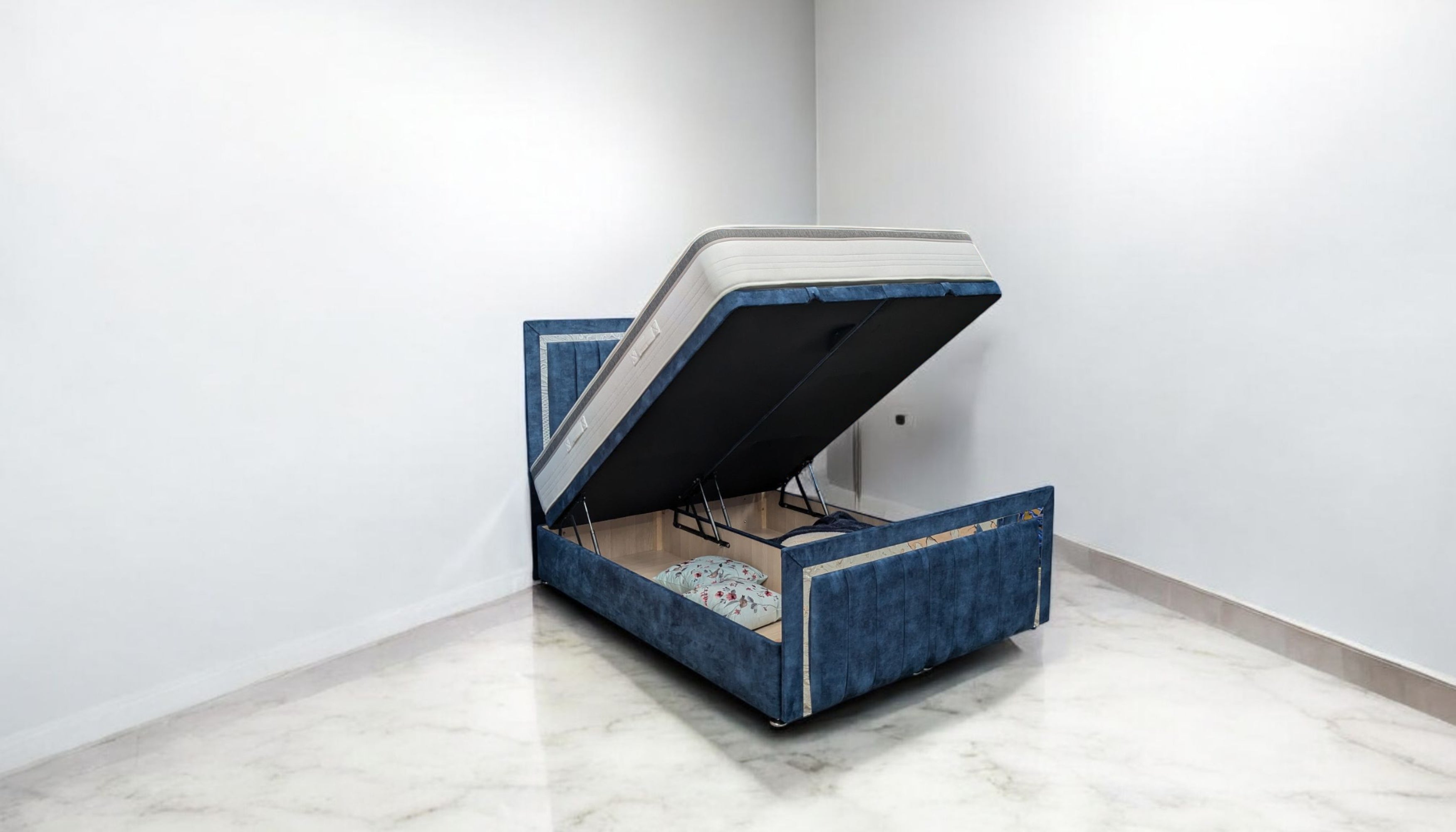 - Handcrafted, elegant and durable Ottoman bed upholstered in a choice of premium fabrics