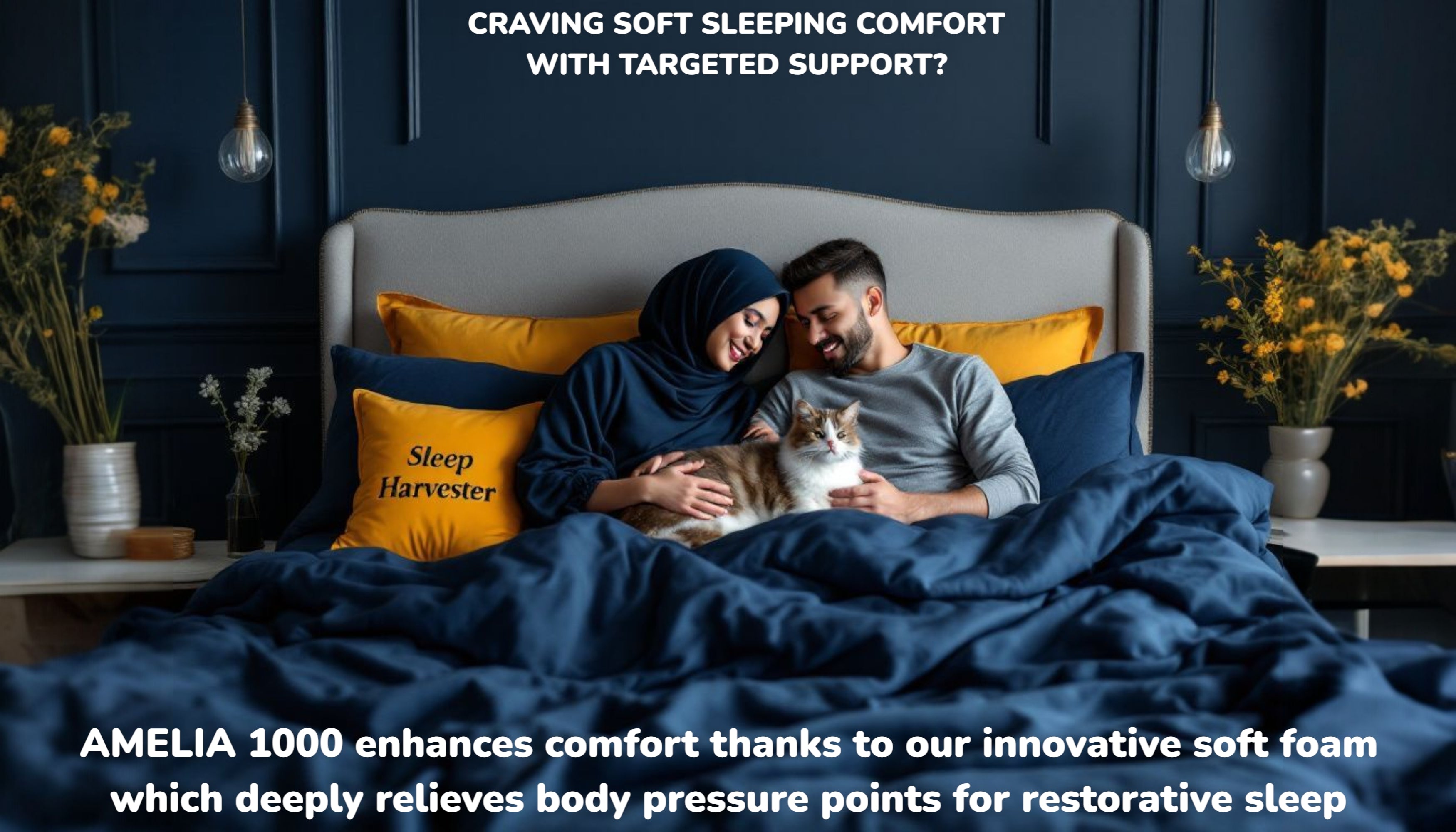 AMELIA 1000 is a 32 cm deep mattress with 8 comfort and support layers for dual feel comfort options. This mattress comes with our top layer of innovative ErgoCore® foam for body pressure relief and comfort layer for a complete body support on the soft side. The medium firm side has a layer of premium HD foam with comfort fillings.