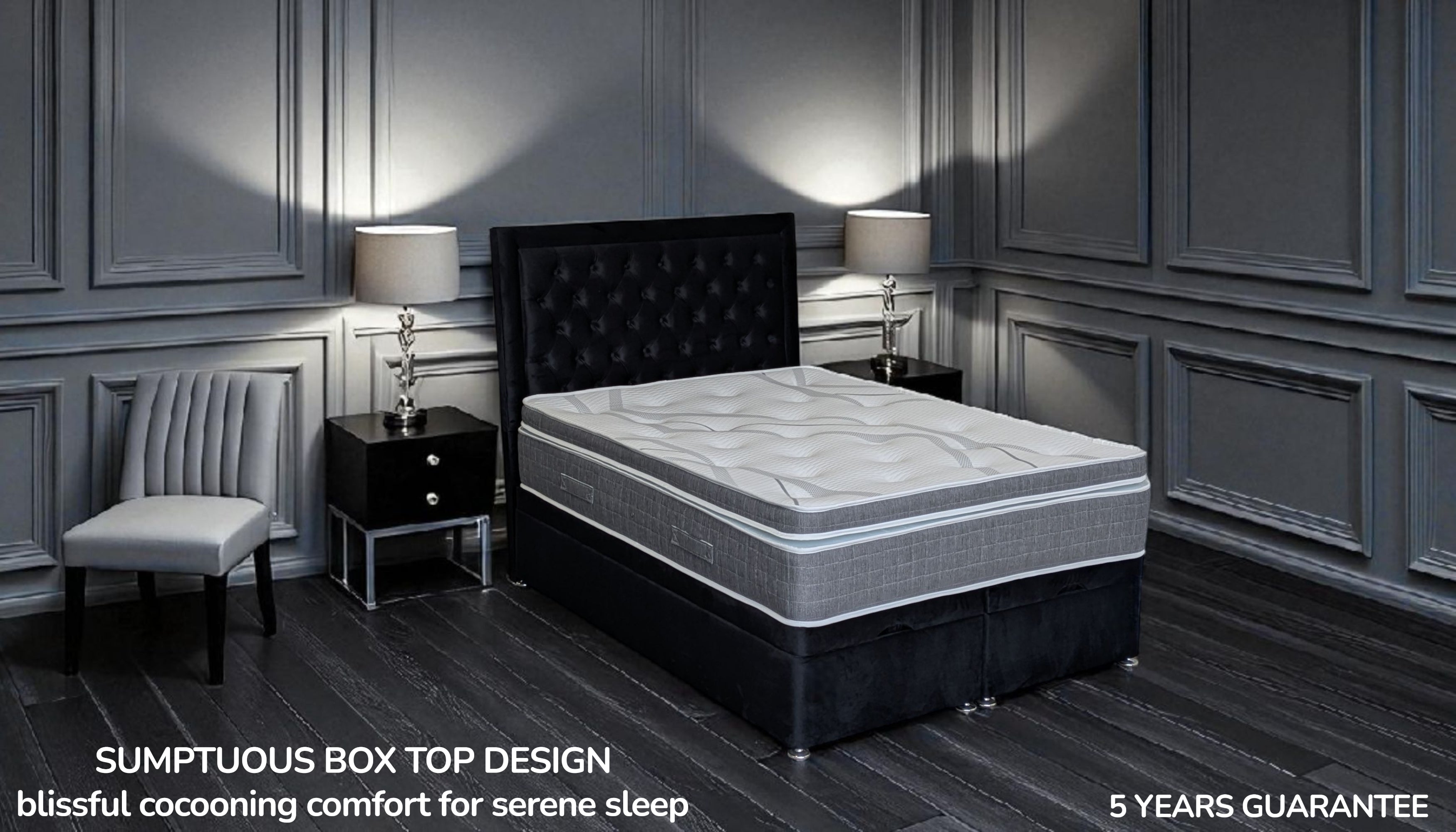 Specifically engineered with the options of comfort grades, this next level, sumptuous box top mattress is available in soft, medium soft, firm and very firm comfort options so that every one in the UK can benefit from this mattress and enhance their sleep quality. We have combined our well researched materials to design this mattress so that it offers a perfect firmness (suitable for an individual's preference) for enhancing your comfort level and support regime for your complete rest and recovery.