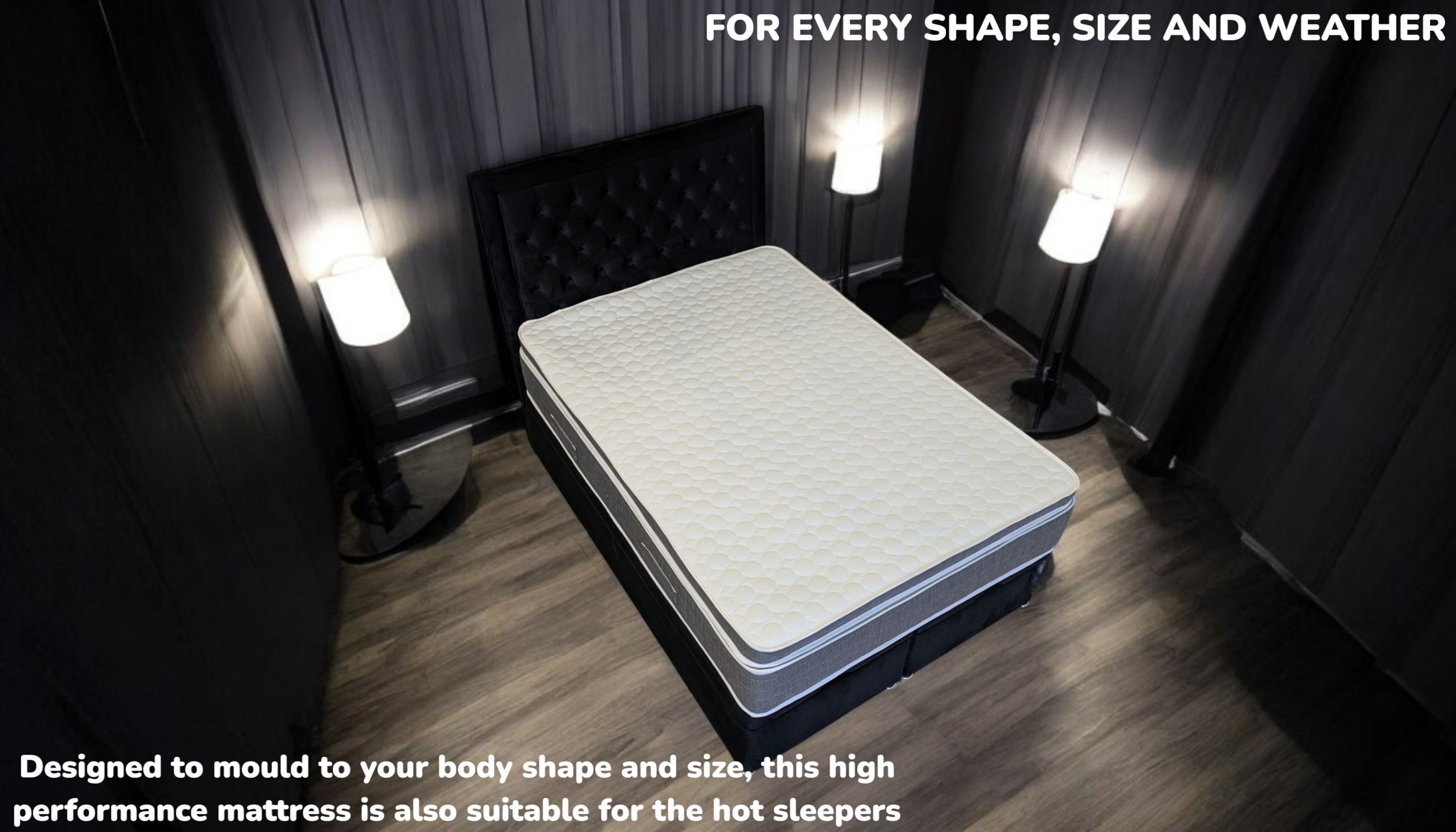 The thickness of your mattress affects your comfort, which influences your sleep quality, health and well-being. A thicker mattress (25 cm to 36 cm deep) with a correct combination of pressure-relieving layers and anatomical supporting core provides you with luxurious comfort and celestial sleep, whereas a thin mattress (13 cm to 23 cm deep) badly affects your sleep and health. This next level, sumptuous box top, high performance mattress is a whopping 34 cm thick and is ideal for 100% of the UK population, making it suitable for every bedroom in the UK.